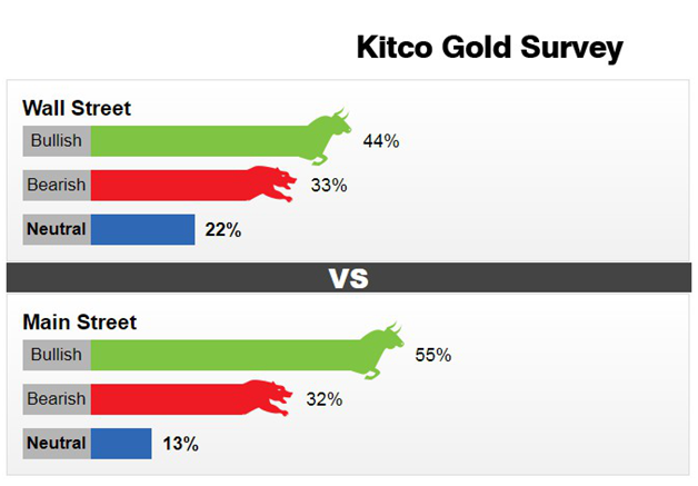 •Wall Street and Main Street are both bullish in the weekly Kitco News gold survey, looking for the metal to continue the bounce from the year-to-date low it hit at the start of this week.