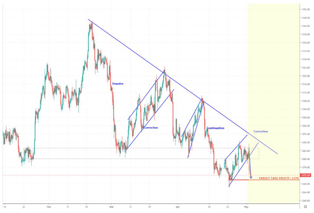 If prices can break below the 1280 level and push to the downside, it could be a good indication of bearish momentum. As always, let the market reveal its hand and wait for a collapse below entering any short positions. This is because market makers will be looking to trap breakout traders (particularly those waiting to place a short position). Otherwise, only market wizards can forecast the market direction.