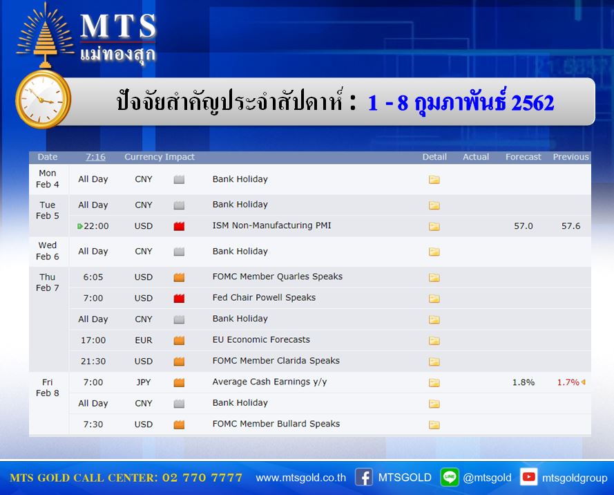 สรุปข่าวราคาทองคำ (ภาคเช้า) ประจำวันที่ 4 กุมภาพันธ์ 2562